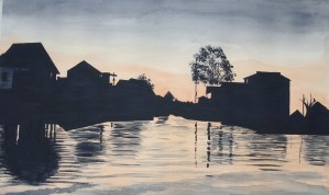 I wish I could say that I’ve painted Chatsworth as I had Lizzy paint Pemberley. I did start one, but it wasn’t working. I have yet to attempt it again. Instead, I have mostly painted scenes involving water and usually at sunrise or sunset. I enjoy the effect of the lack of light on the scene–much like the Impressionists.