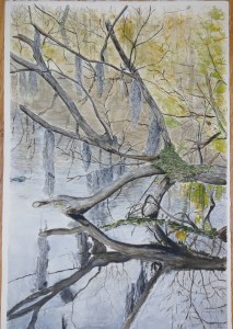 It was easiest as she painted to describe how I might go about creating one of my paintings. My watercolours aren’t typical of the medium by any means, but I enjoy them and my watercolour instructor often praised my work whether I used a typical watercolour style or my own darker one.