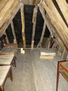 Tuesday night at the house was a special opening and tea service. Guided tours of the attic were given, and I was thrilled to be allowed inside a part of the house rarely opened for visitors. With the narrow and confined quarters and warped floorboards on the stairs, it is no wonder they do not open it on a constant basis.