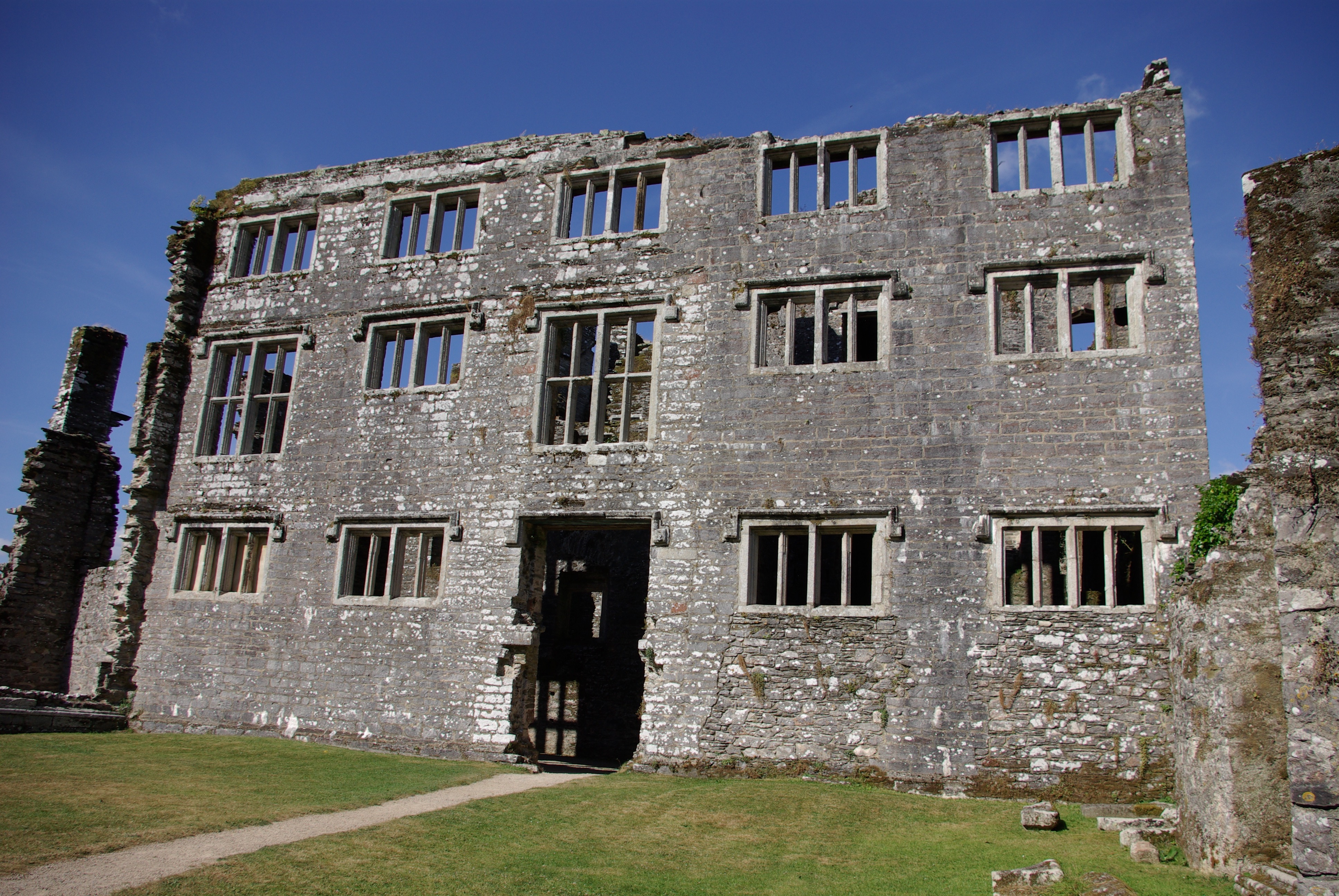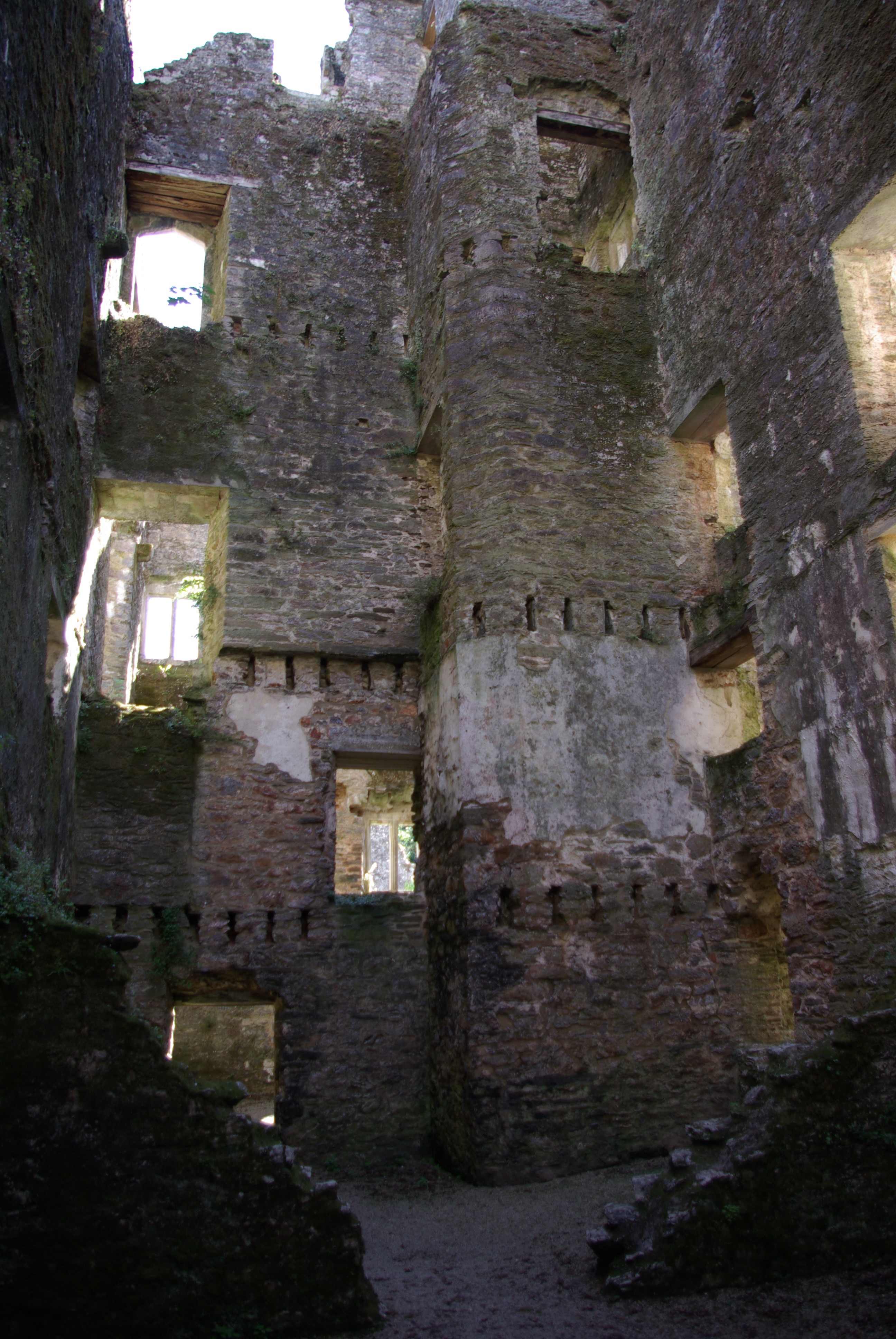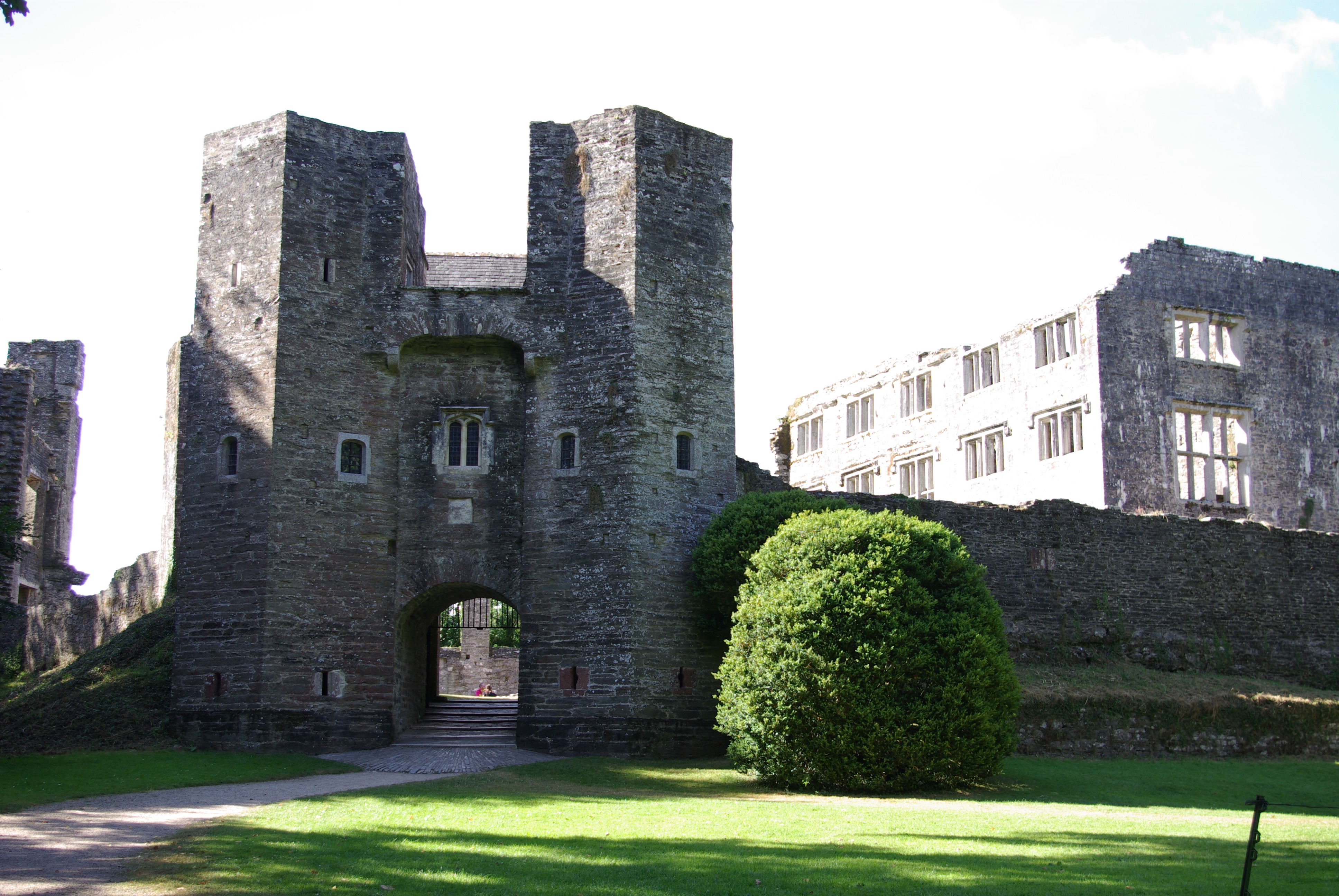 Now, Berry Pomeroy still sits in the same valley. It is no longer covered by ivy, but surrounded by a thick wood to the rear of the property. Guard rails and other protective measures allow tourists to walk through what is left of the structure and there is still a portcullis and you can see where hot liquids could be poured down on any attacking enemy.