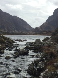 As we curved south toward Killarney, we stopped at the Gap of Dunloe, a rather narrow pass between MacGillycuddy Reeks and Purple Mountain. This amazing place was formed by glacial flows and where the Loe river now flows. We followed the GPS/SatNav until we reached a small cafe. We briefly stopped thinking we could drive no further. The weather had been rainy all day and it was still a bit drizzly when we arrived. There is a horse and cart for hire than can take you out along the small winding road into the Gap, but we didn’t take one. I will say that when we mentioned driving, the cart drivers told us not to even though we saw a lot of cars driving out from the road.