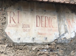 We passed some lovely mosaics in former front doors as well as the House of the Wounded Bear, which is mid-1st century AD. We also passed graffiti on the walls that remain from when Pompeii was in its hey day. The writing is political propaganda.