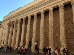 Rome is riddled with historical monuments. I commented in the first post that you can turn a corner and find a fresco or a sculpture on the next, but it’s almost that way with monuments as well. You can turn a corner and find columns sandwiched between two buildings, or just a wall of columns that once belonged to a great building. It’s one of the most fascinating things about Rome.