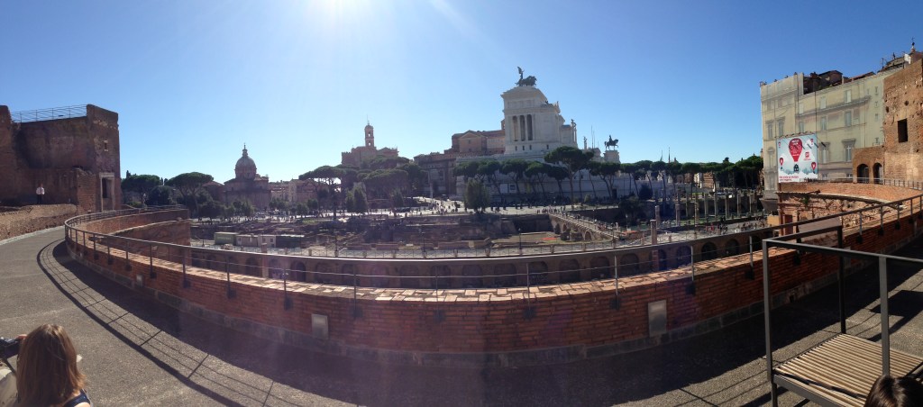 From the hemisphere of Trajan’s forum, a great view of Trajan’s column and the Vittoriano can be seen.