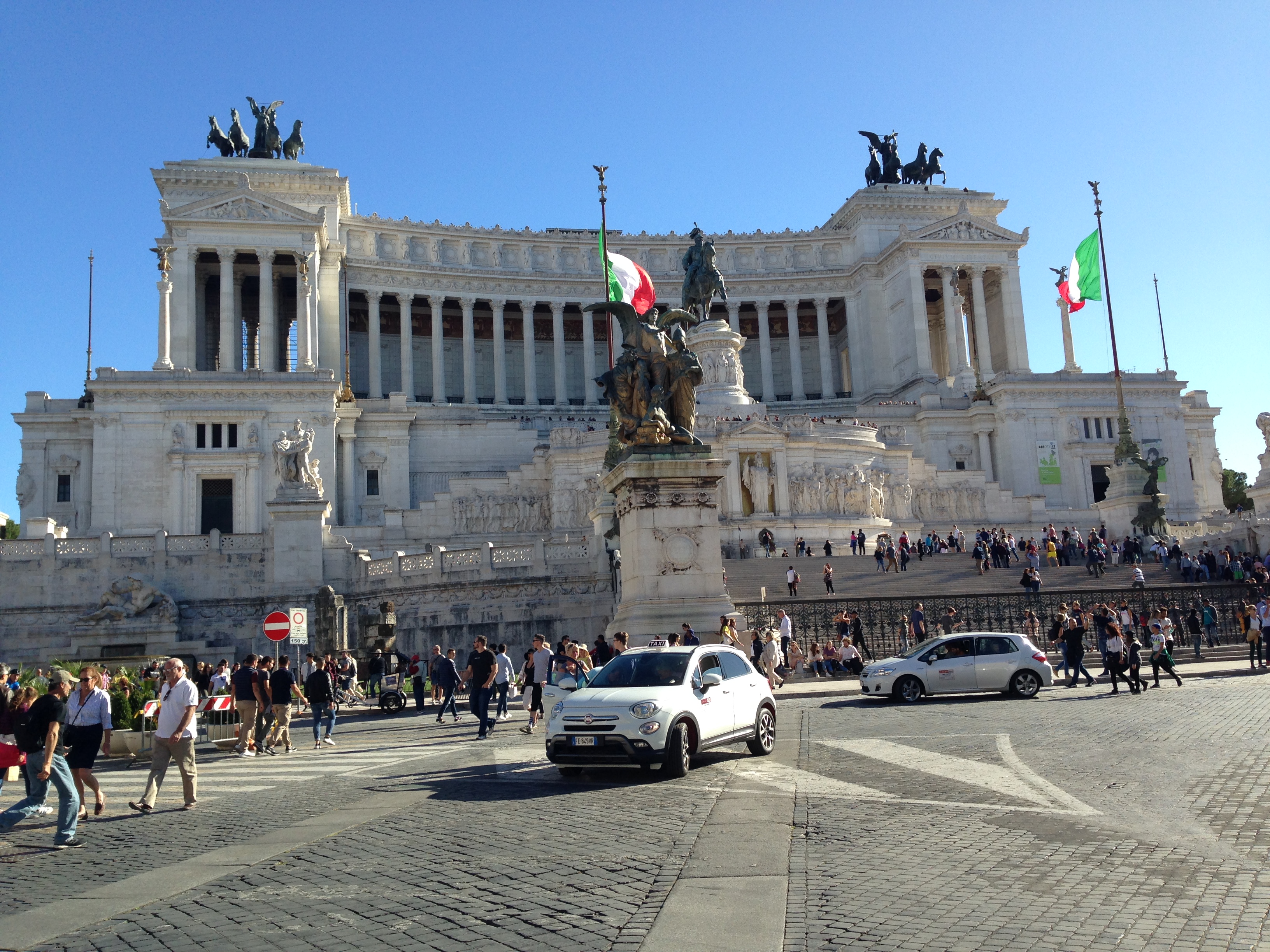 The monument is a huge tourist attraction now, but it isn’t without its controversy. A part of the historic Capitoline Hill as well as a medieval neighbourhood were destroyed to build it. Because of the bright white colour in an area of Rome that is not white, it stands out and has earned some nicknames from the people of Rome, who still are not thrilled with its presence, including the wedding cake, the set of false teeth or la dentiera, the typewriter or macchina da scrivere and English soup dessert or la zuppa inglese.