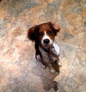 “Look what Layla did!” she exclaimed, pushing her cupped hands filled with red fluff and pieces of pipe cleaners in Lizzy’s face. Layla was their nine-month-old Springer Spaniel puppy that they’d adopted from a rescue organization, and she was always getting into something.